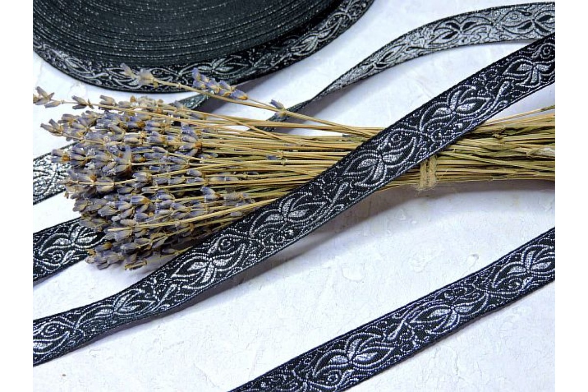 Лента отделочная 16 мм, цв. черный с серебром - 1 м.