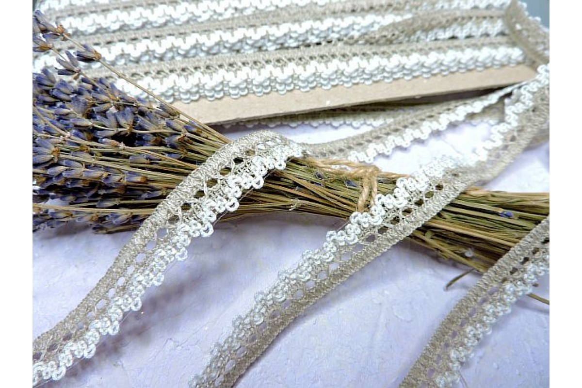 10873, Тесьма отделочная 16 мм, цв. лен с белым - 1 м., , 1.11BYN, 2594, Беларусь, Текстильные ленты (Производство Беларусь)