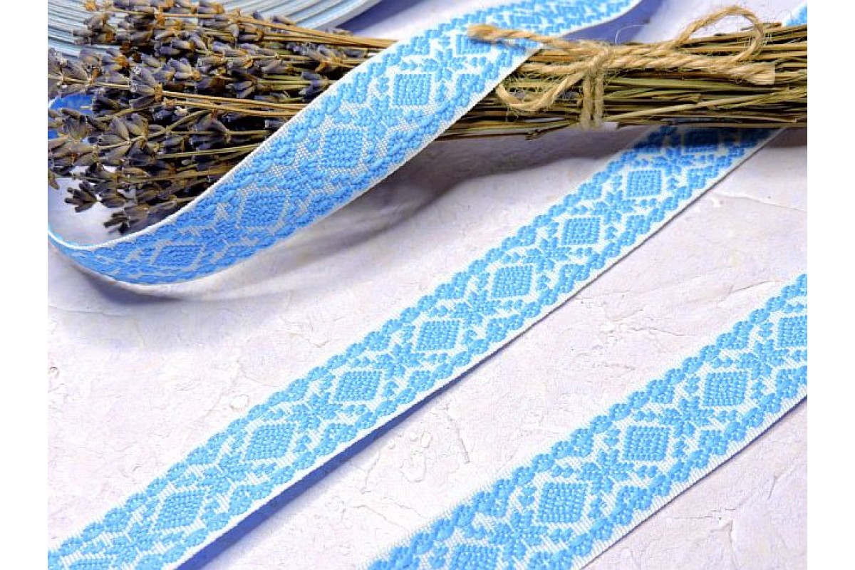 Тесьма отделочная жаккардовая 23 мм, цв. бело-голубая - 1 м.