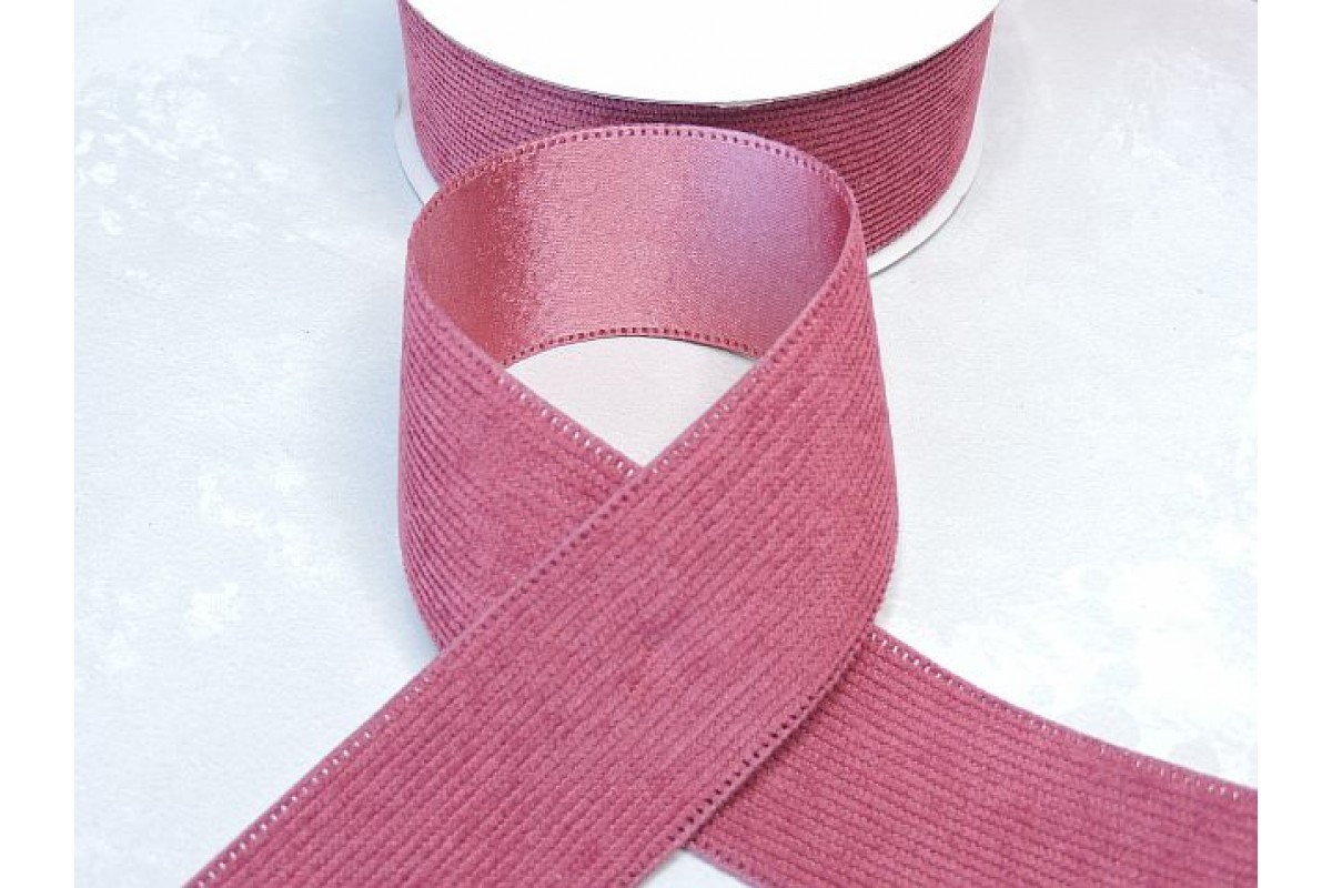 Лента вельвет/атлас 3,8 см, цв. вишневая пенка - 1 м .