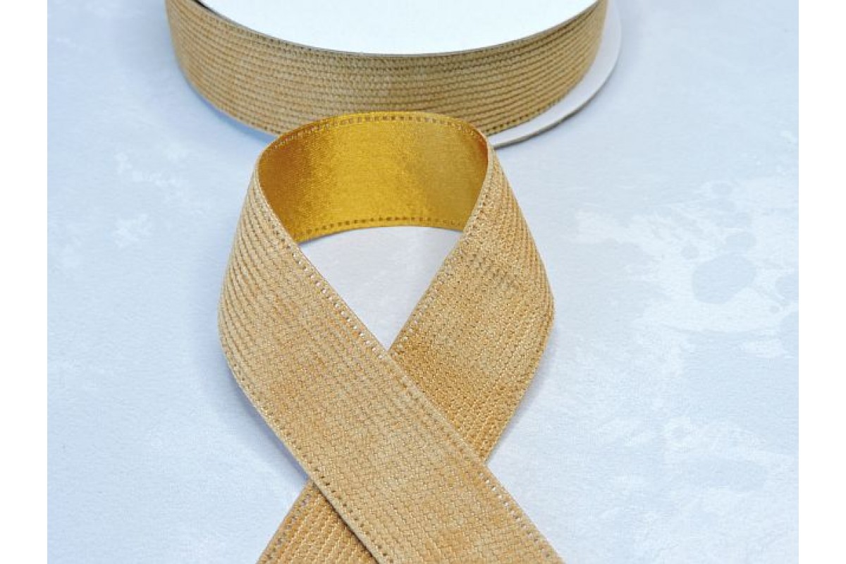 Лента вельвет/атлас 25 мм, цв. песочный - 1 м.