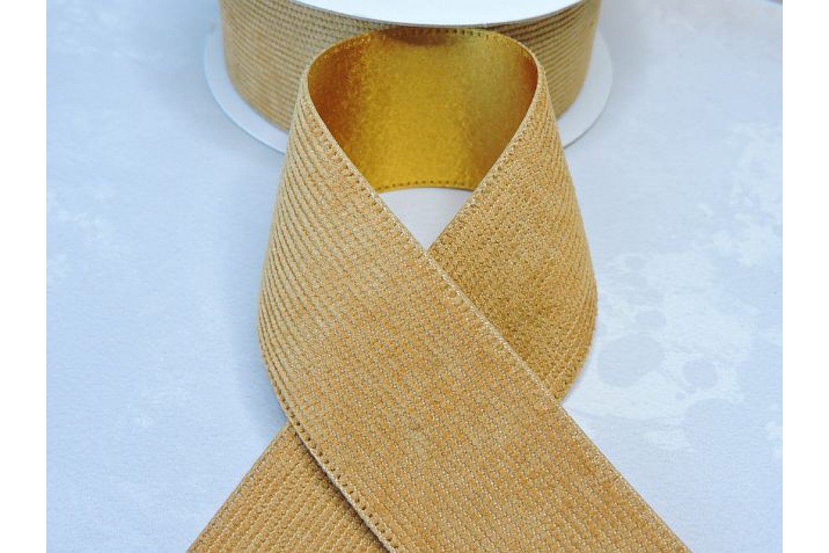 Лента вельвет/атлас 3,8 см, цв. песочный - 1 м .