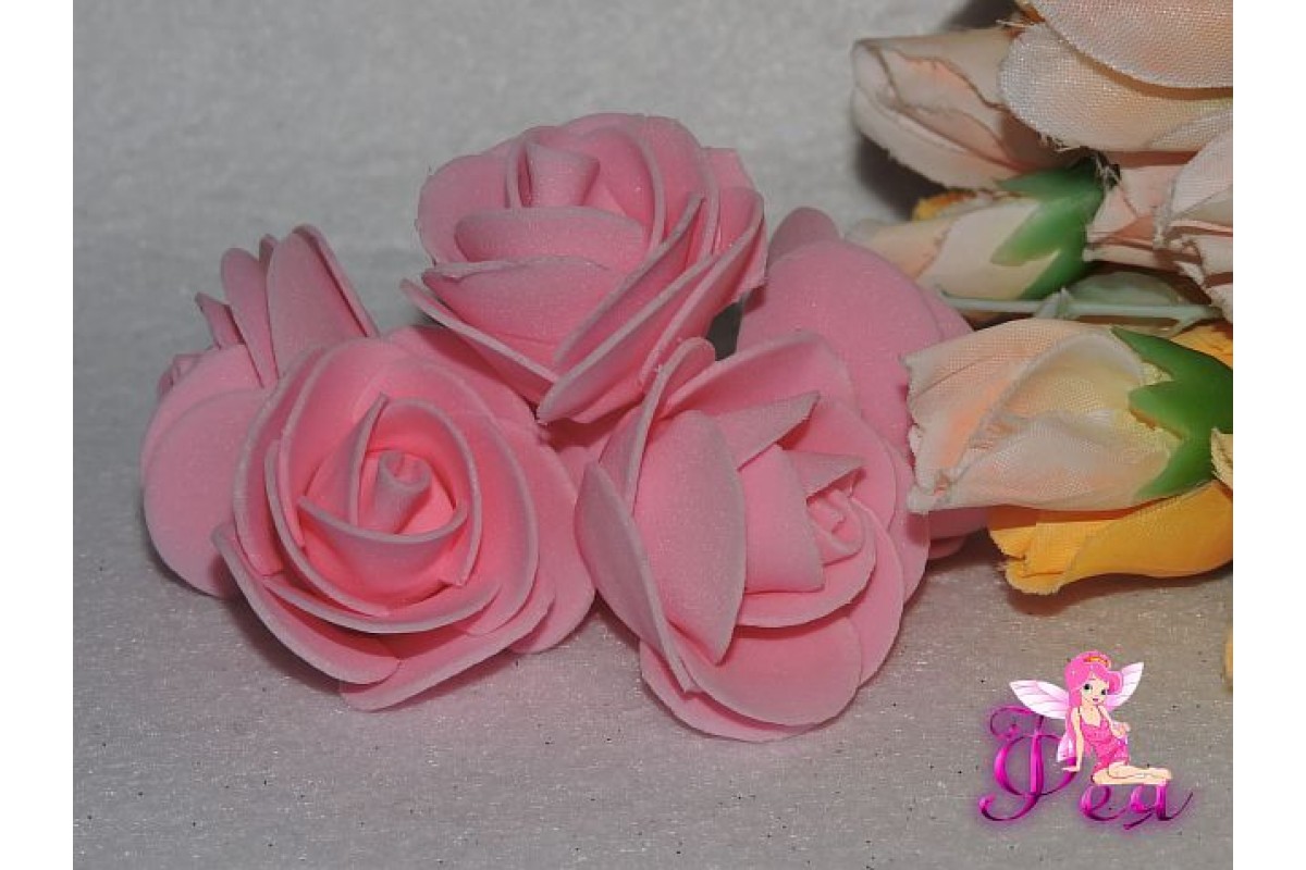 Роза из фоамирана 6 см, цв. розовый, 15-174, Китай, Цветы из фоамирана
