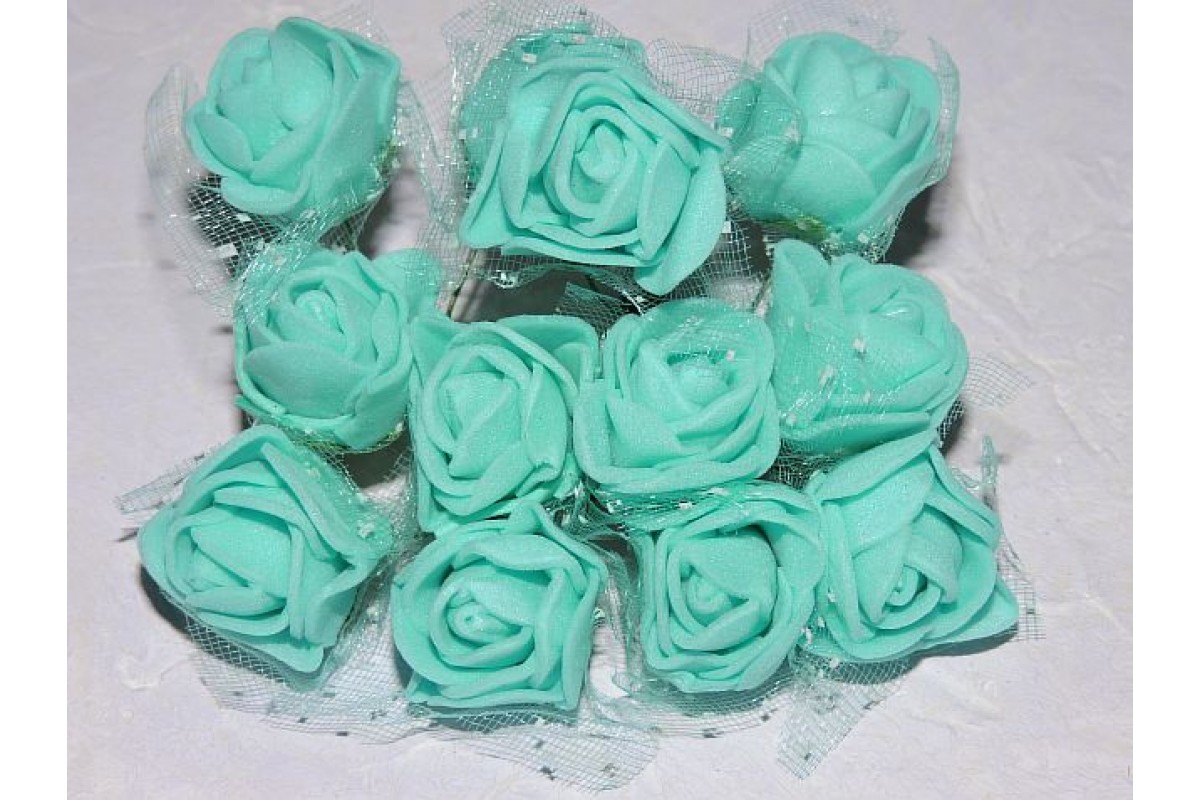 Розочка на веточке с сеточкой, 2.5 см-диаметр, цв. аквамарин (12шт), 16-116, Китай, Цветы из фоамирана