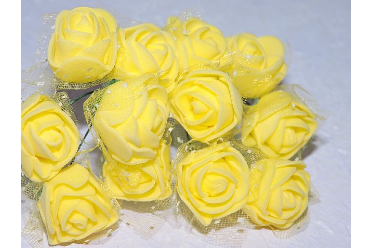 Розочка на веточке с сеточкой, 2.5 см-диаметр, цв. желтый (12шт), 16-109, Китай, Цветы из фоамирана