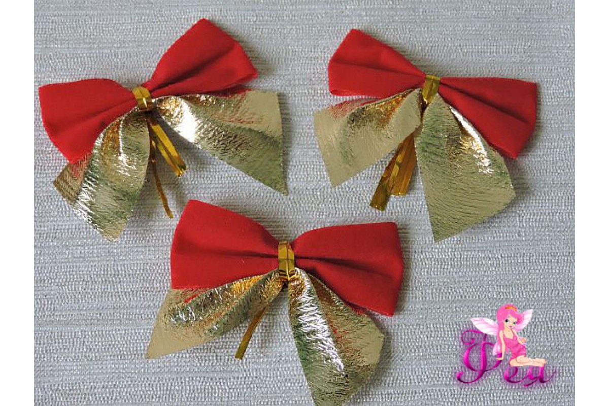 Бантик бархатный 5 см, красный-золото, 677-002, Китай, Декоративные элементы