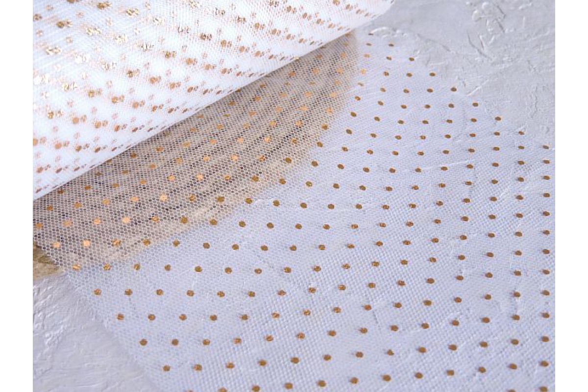 Фатин "Горошек", цв. белый/золото - 1 м, 803-382, Китай, Фатин