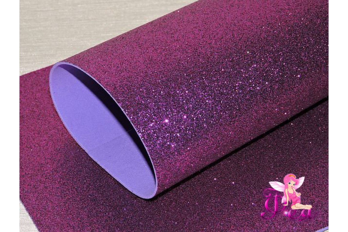 Фоамиран глиттерный 2 мм, цв. фиолетовый - 1 лист.
