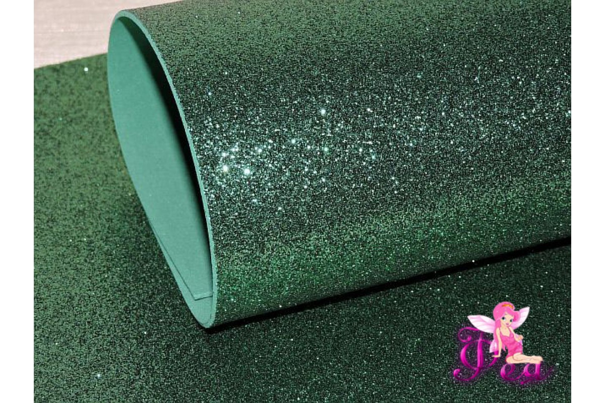 Фоамиран глиттерный 2мм (20*30см), цв. темно-зеленый, Н005(807-109), Китай, Глиттерный