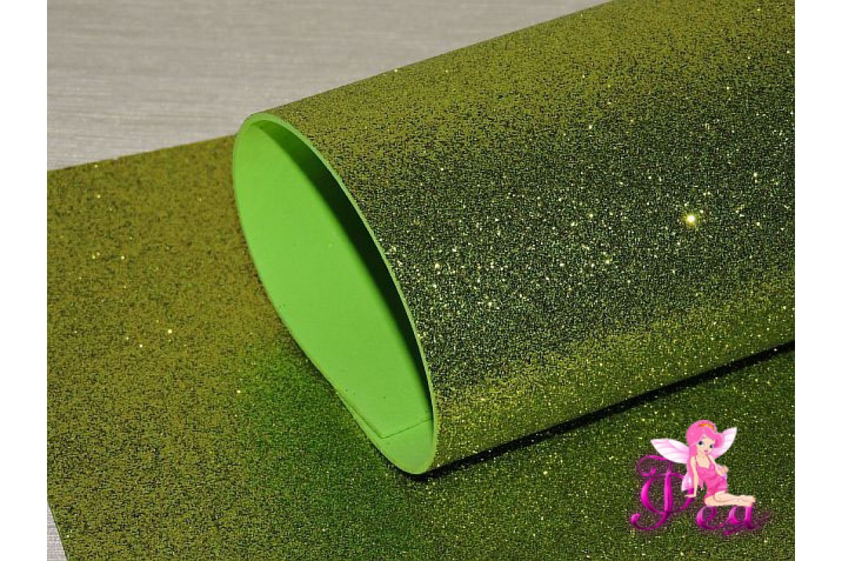 Фоамиран глиттерный 2мм (20*30см), цв. золотисто-зеленый