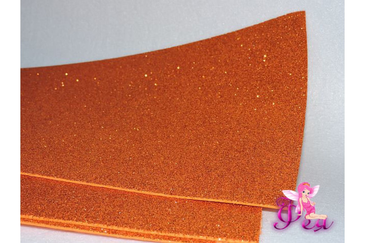 Фоамиран глиттерный 2мм (формат А4), цв. оранжевый, 807-10, Китай, Глиттерный