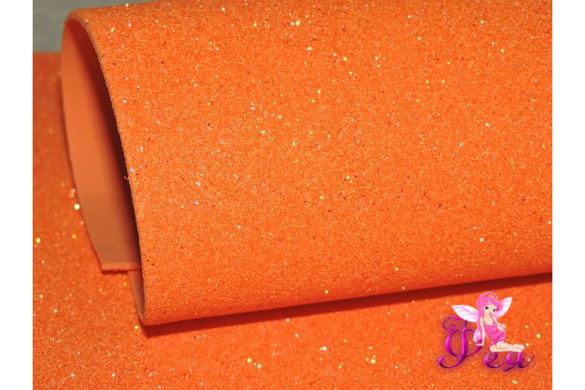Фоамиран глиттерный, перламутровый 2мм, цв. ярко-оранжевый - 1 лист.