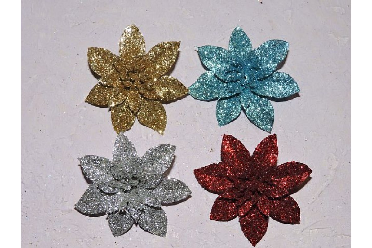 Новогодние украшения с блестками "Пуансеттия" 6 см - 1 шт.