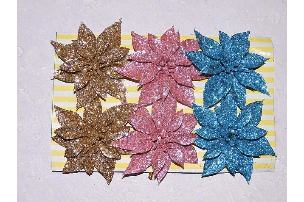 Новогодние украшения с блестками "Пуансеттия" 8 см - 1 шт.