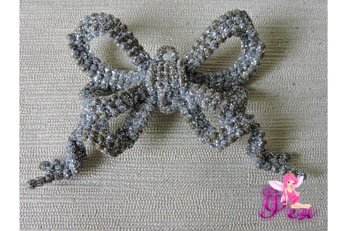 Новогодние украшения с блестками 8*5см "Бантики", серебро