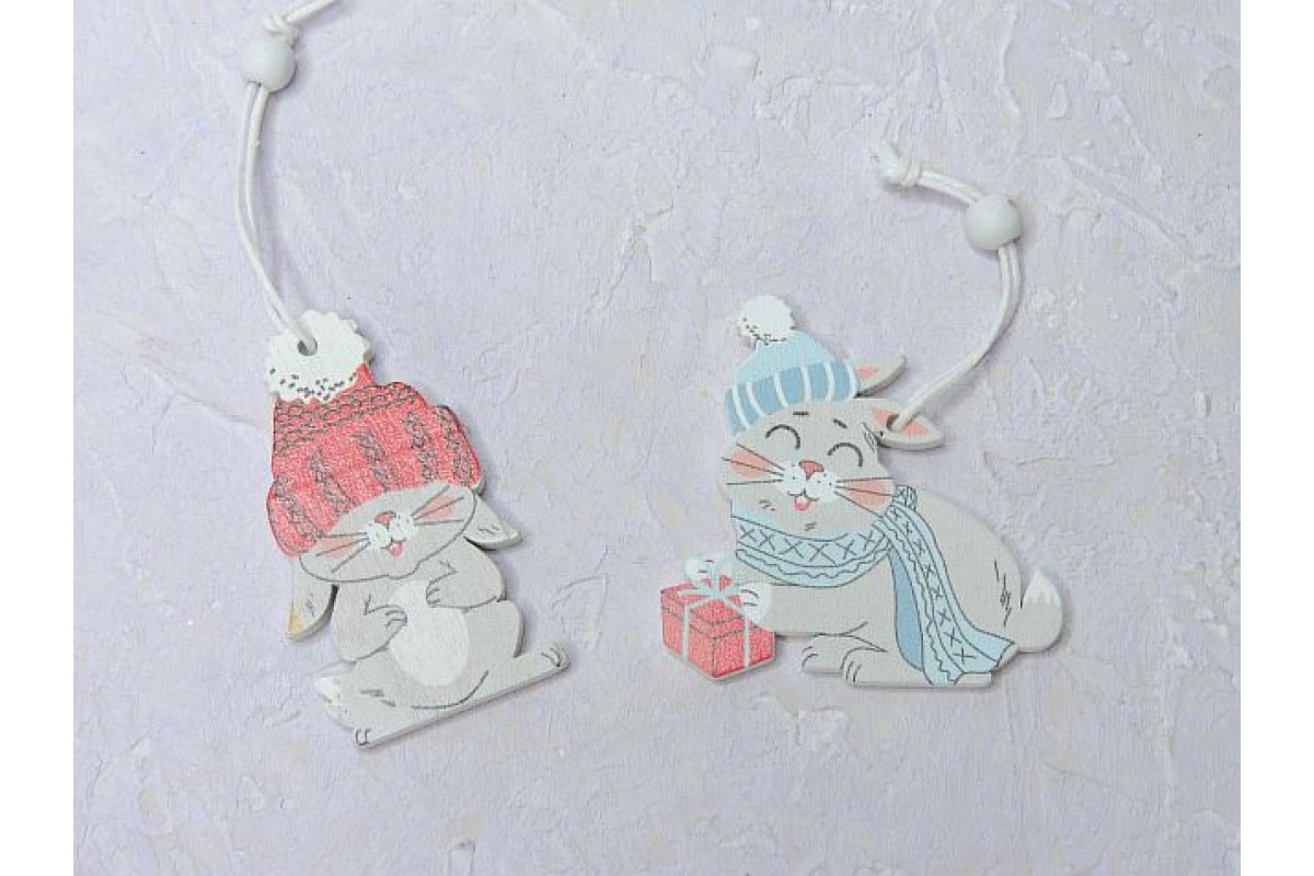 Новогодняя игрушка "Зайчики"-1 шт., 677-689, Китай, Новый год