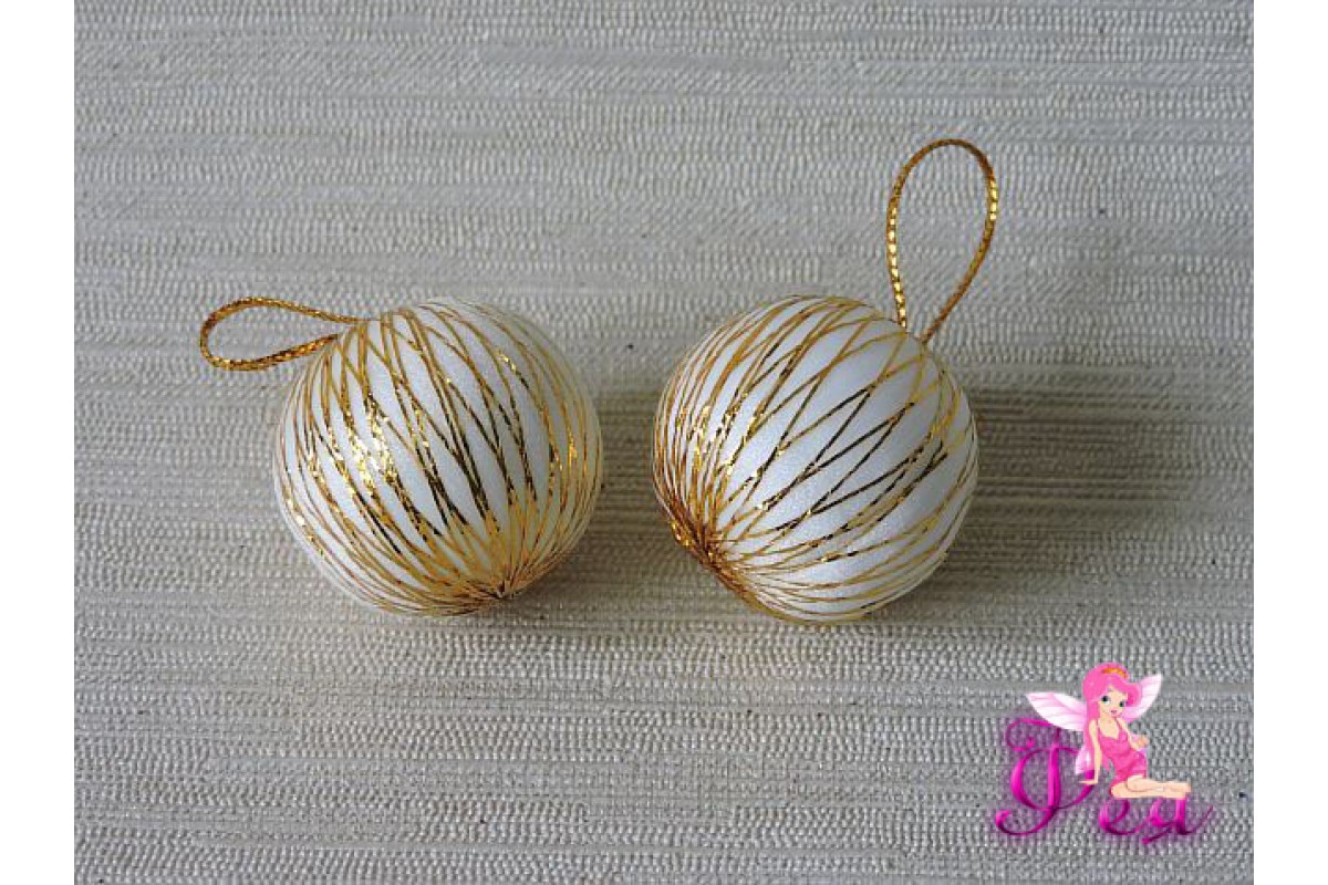 Шарик новогодний 2, 7 см, белый с люрексом, 677-016, Китай, Новый год