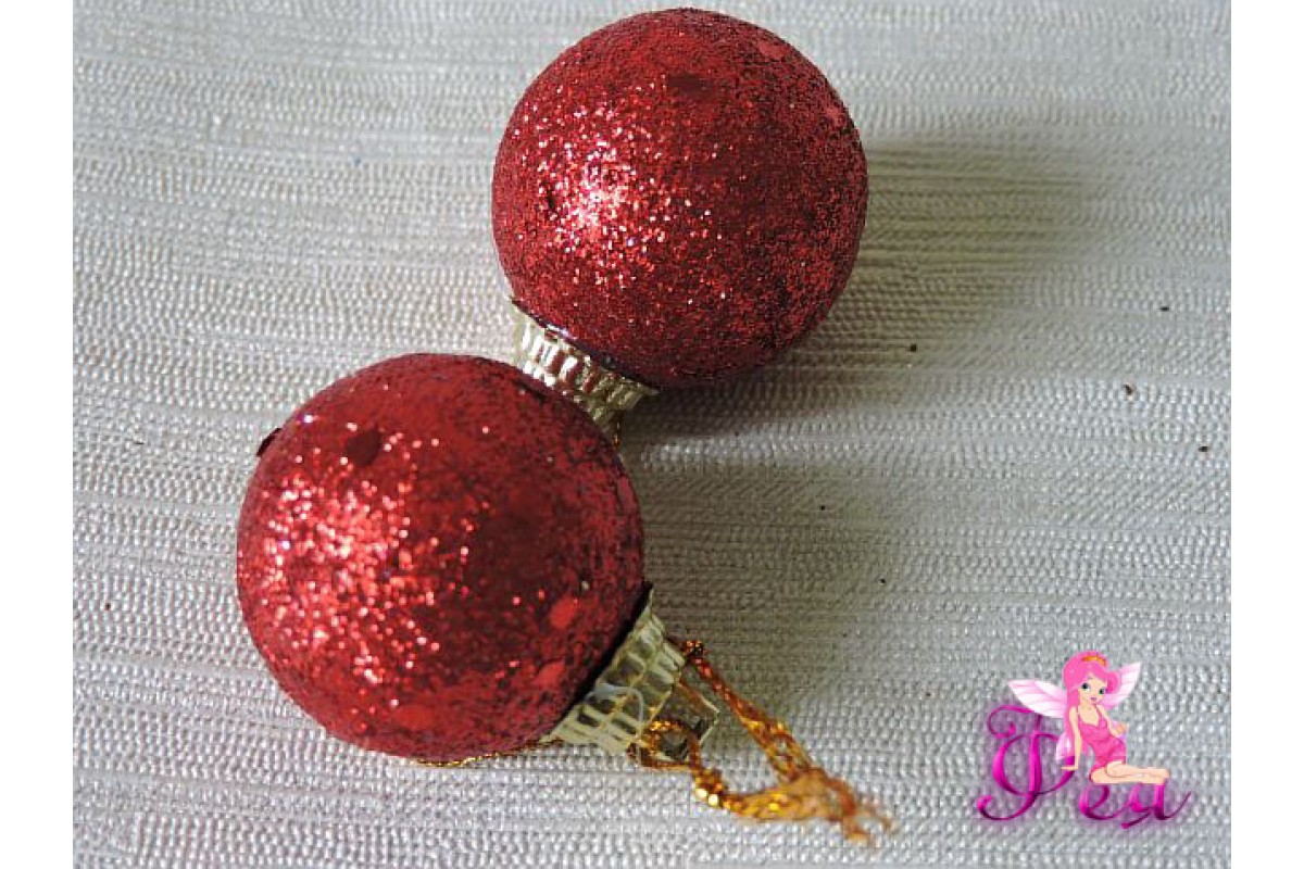 Шарик новогодний 2,7 см с блестками, красный