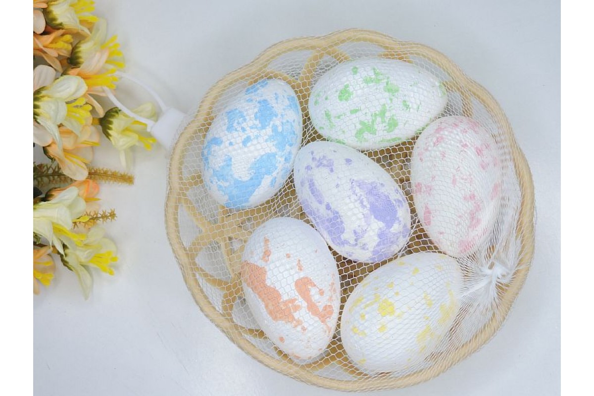 Яйца декоративные 4*6 см (пенопласт) в корзинке - 1 набор.
