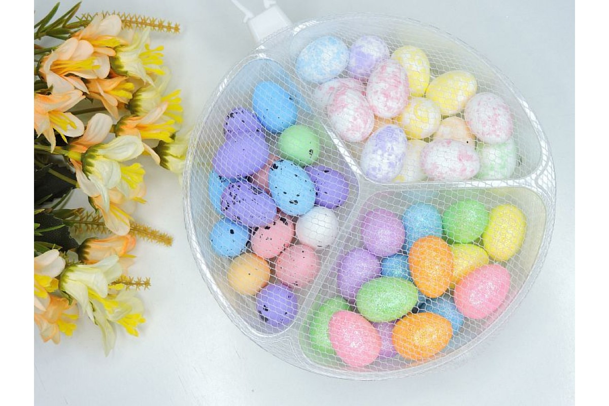 Яйца декоративные 1,5*2,5 см (пенопласт), цв. микс - 45 шт.