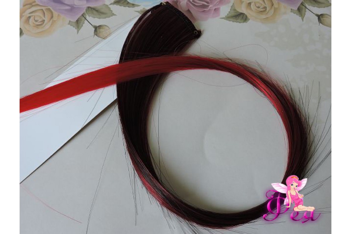 Цветная прядь градиент, 50 см, цв. черный-красный - 1 шт.