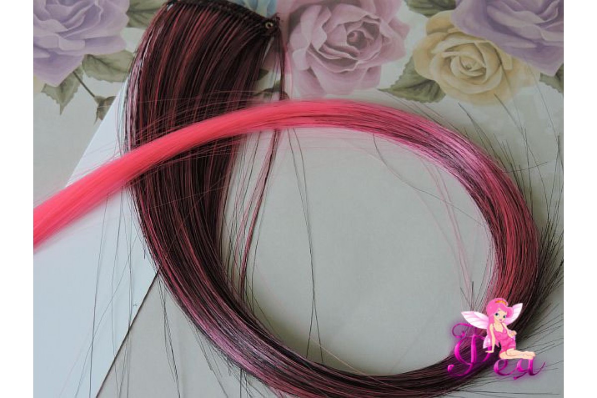 Цветная прядь градиент, 50 см, цв. черный-розовый - 1 шт., 0041-010, Китай, Пряди цветные