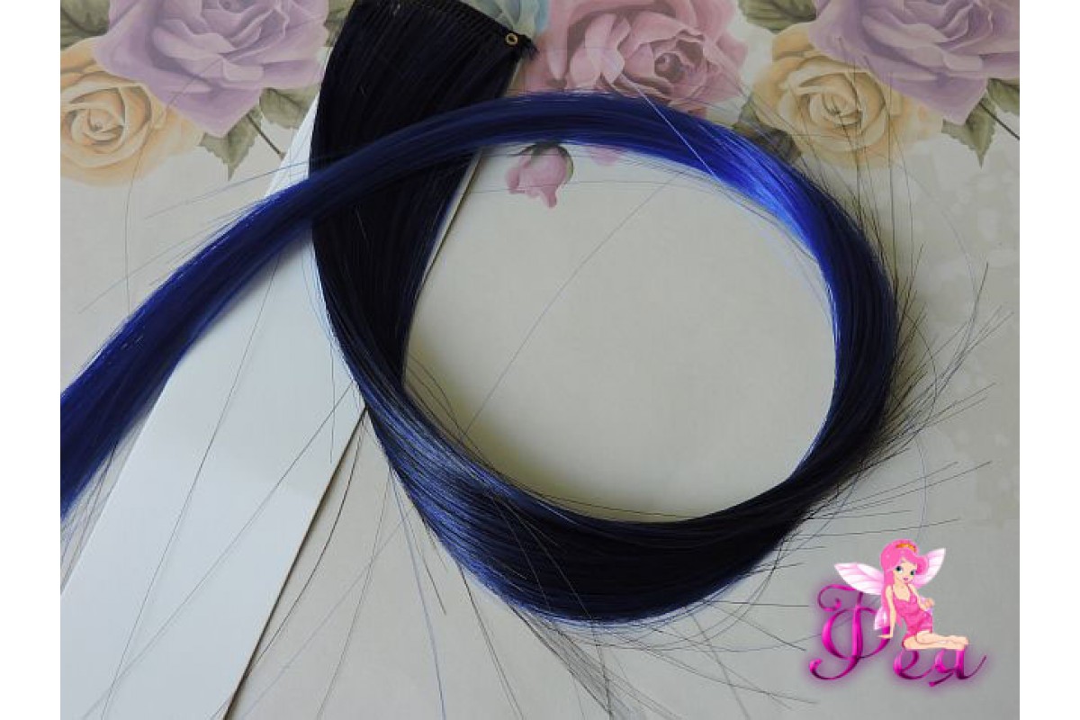 Цветная прядь градиент, 50 см, цв. черный-синий - 1 шт.