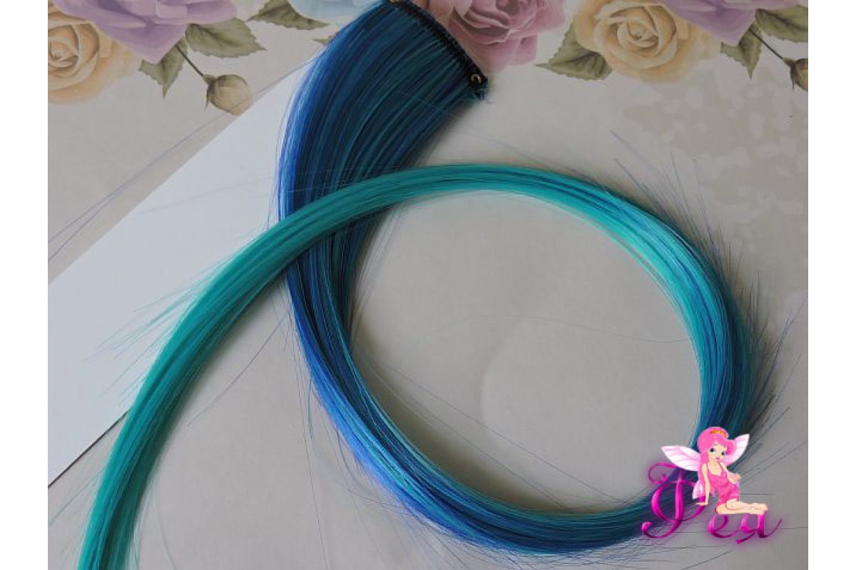Цветная прядь градиент, 50 см, цв. синий-зеленый - 1 шт., 0041-015, Китай, Пряди цветные