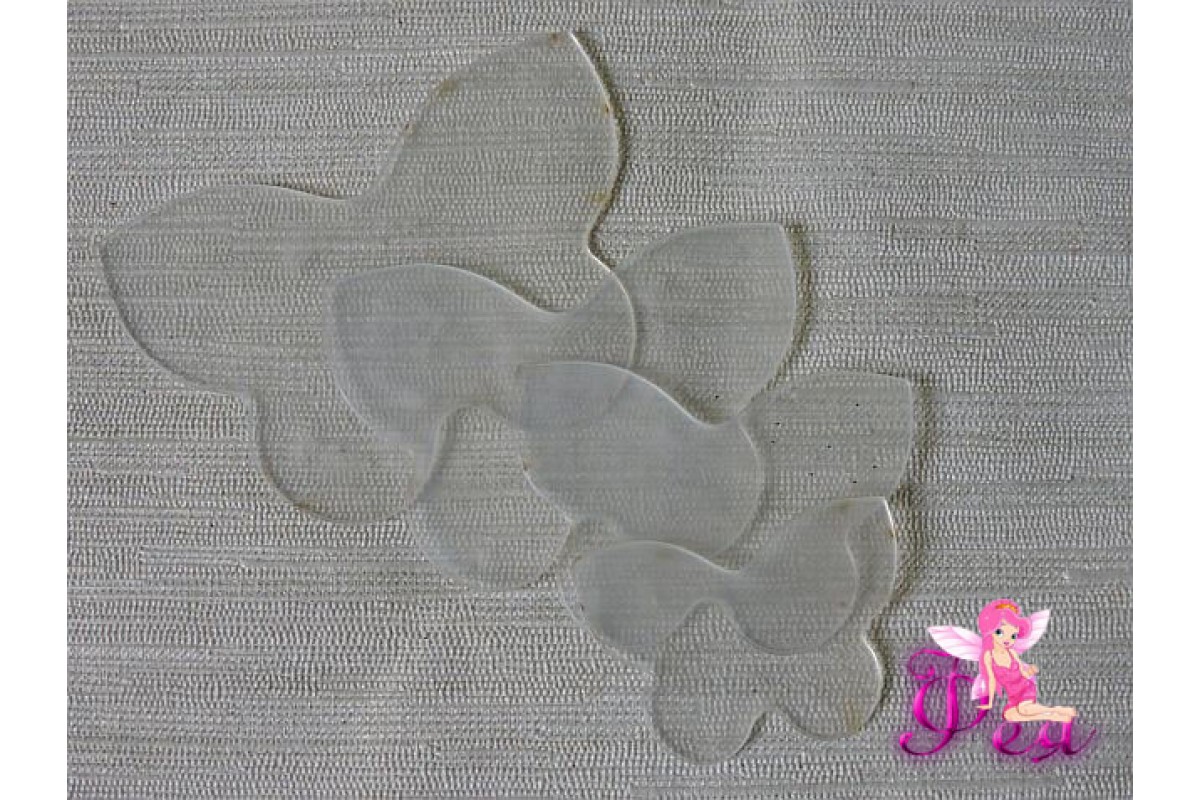 Набор шаблонов "Бабочка 5" в комплекте 4 детали из гибкого пластика 0,7мм. Размеры в готовом виде: 7см, 6см, 5см, 4 см Все детали в прозрачной пленке с двух сторон, ее нужно удалить перед началом работы.