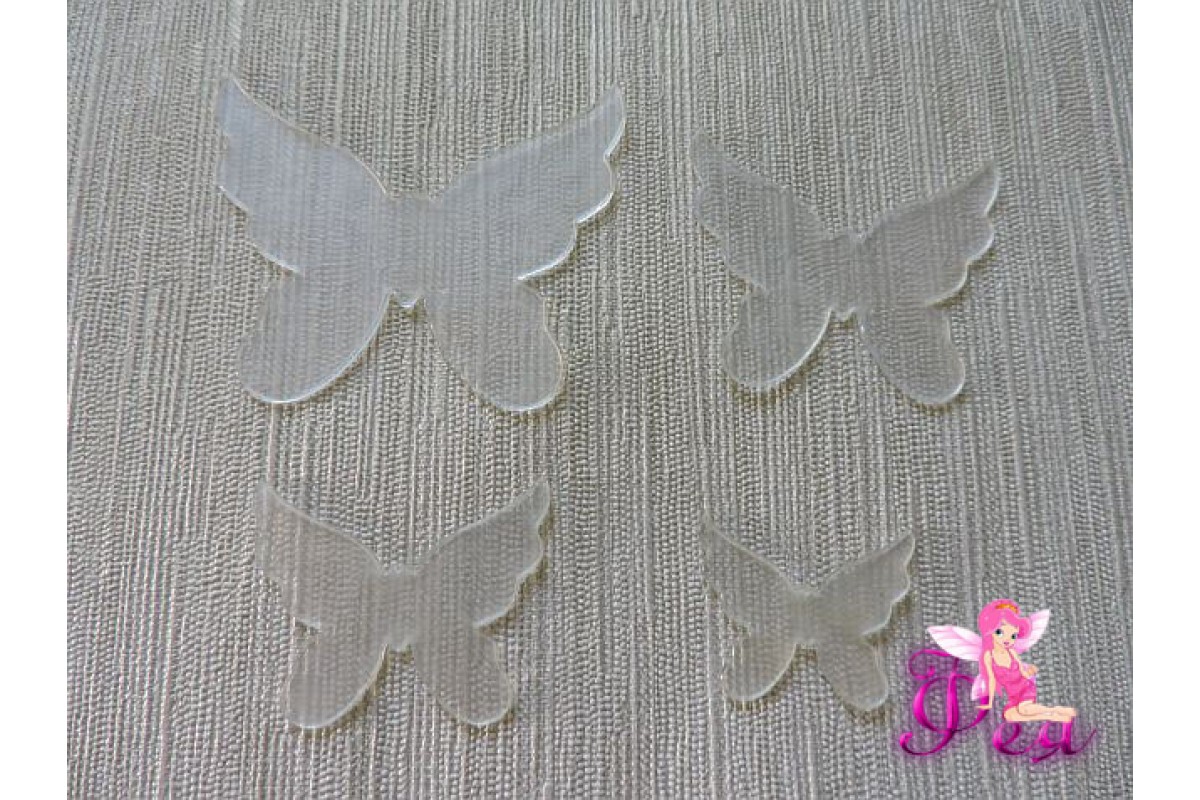 Набор шаблонов "Бабочки №2"В комплекте 4 детали, из гипкого пластика 0,7мм. Размеры по горизонтале: 5,4 см; 4,2 см; 3,5 см; 2.7 см . Все детали в прозрадной пленте с двух сторон, ее нужно удалить перед началом работы.