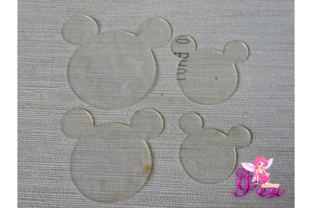 Набор шаблонов "Микки"В комплекте 4 детали из гипкого пластика 0,7мм. Размеры в готовом виде: 6,8см, 5,7 см, 4,6 см, 4,0 см Все детали в прозрадной пленте с двух сторон, ее нужно удалить перед началом работы.