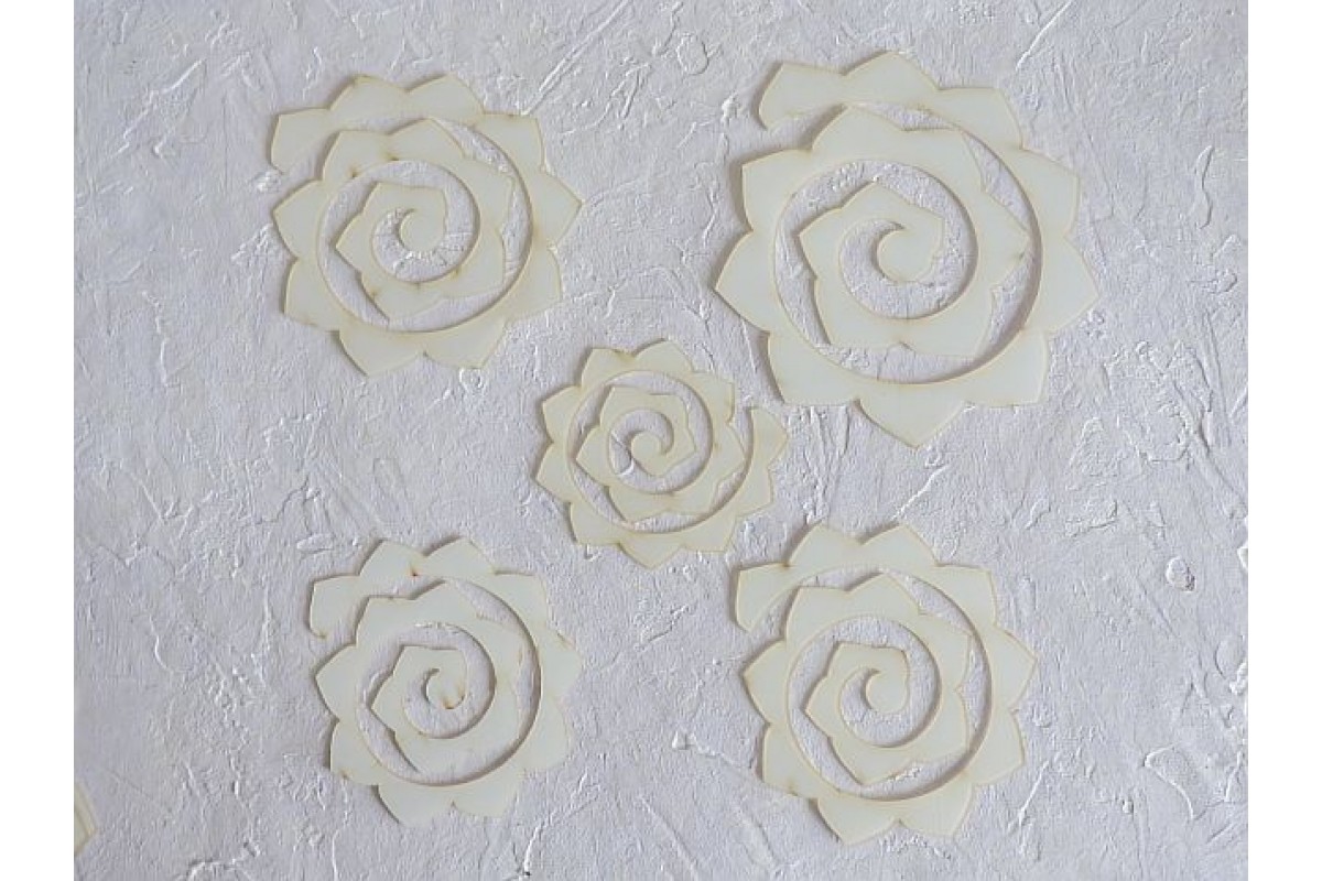 Шаблон "Цветочки 4" - 5 детали из гибкого пластика 0,7мм. Размеры 12 см, 10 см, 9 см, 8 см, 7 см.: Все детали в прозрачной пленке с двух сторон, ее нужно удалить перед началом работы.