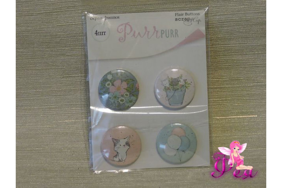 Набор скрап-фишек Purr Purr, 4 шт, SM4600017, ScrapMir (Украина), Элементы декора