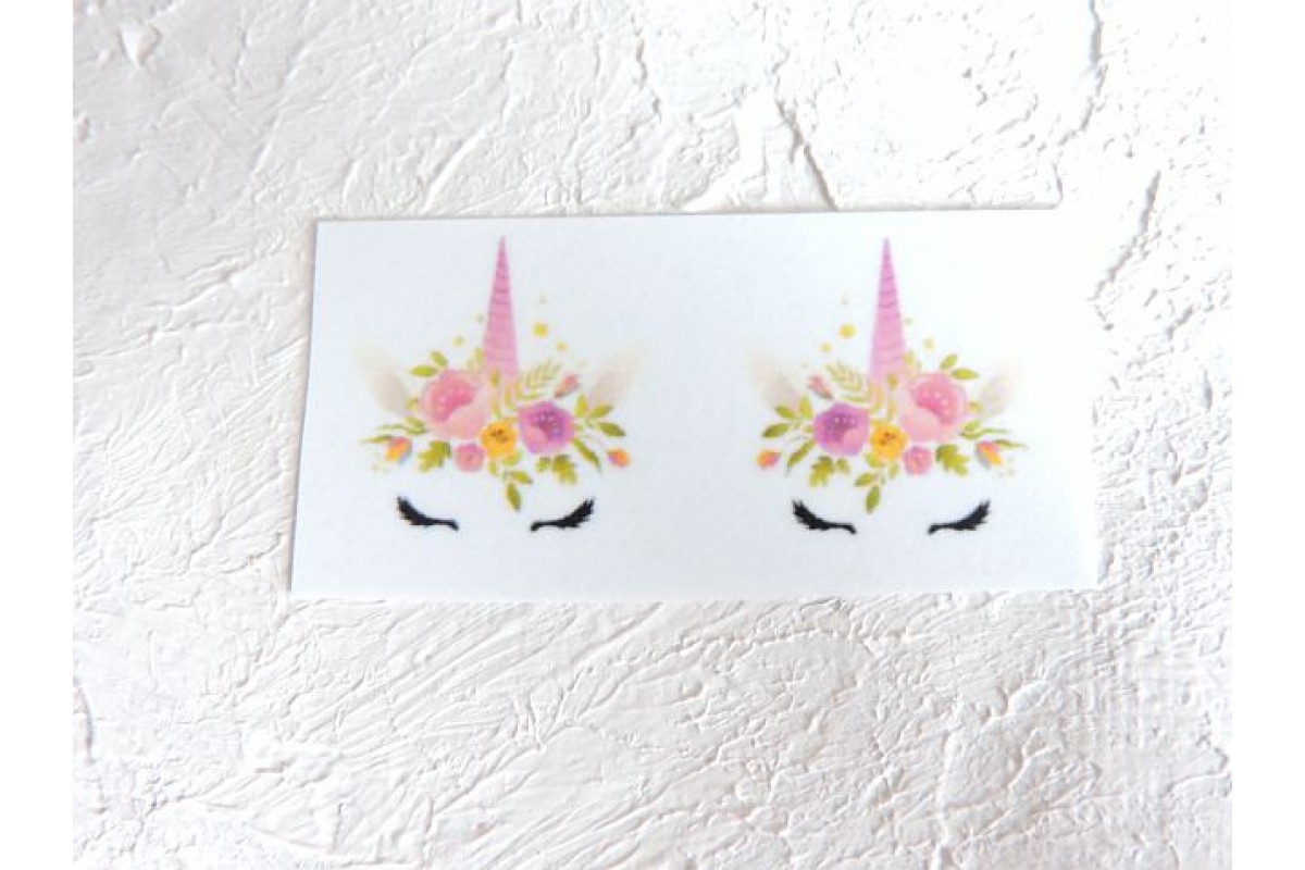 Термонаклейка "Единорог с цветочками" высота - 2,0 см (пара)