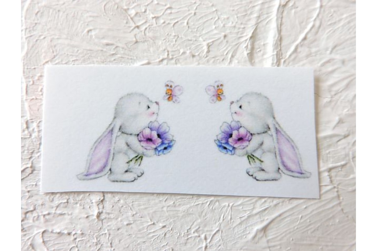 Термонаклейка "Зайка с цветами" высота - 2,0 см (пара)