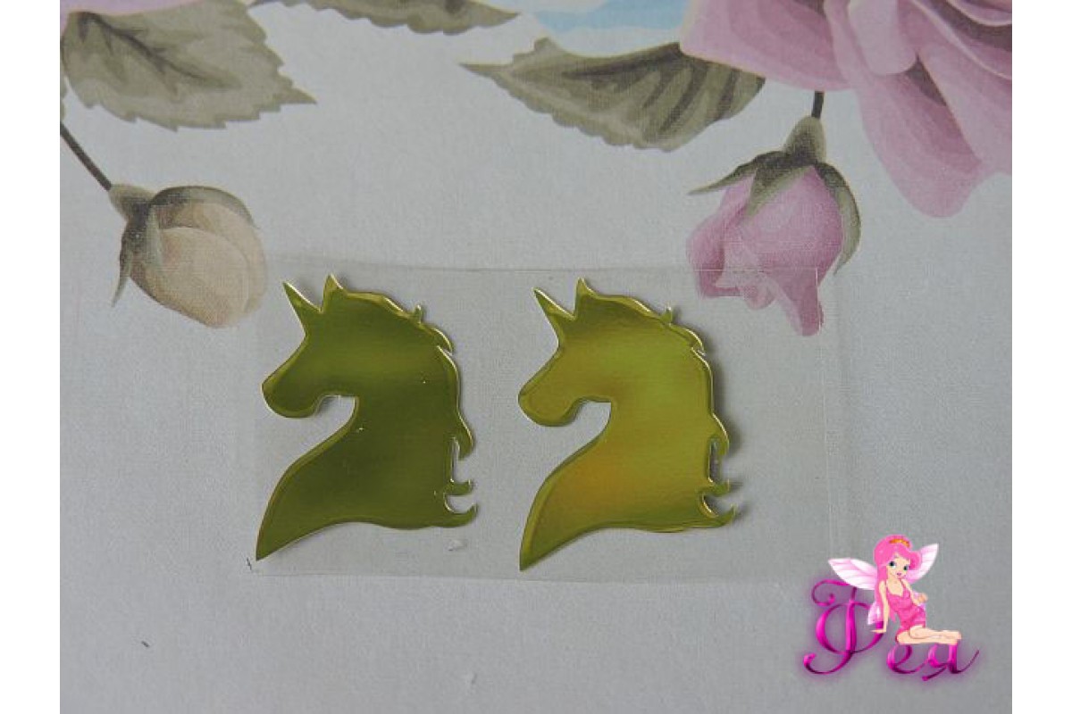Термотрансферная наклейка "Единорог", цв. зеркальное золото, 23*11 мм (пара)