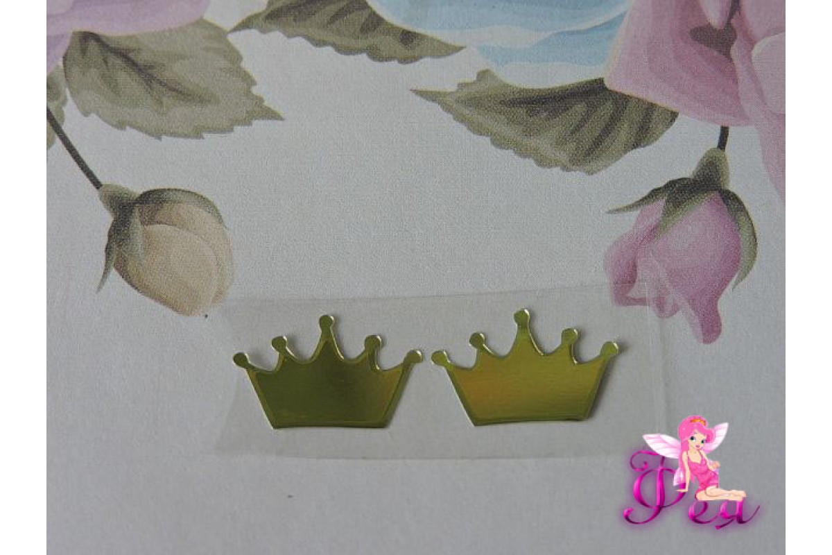 Термотрансферная наклейка "Корона", цв. зеркальное золото, 16*10 мм (пара)