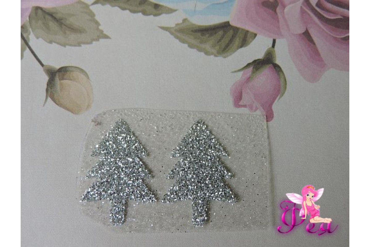Термотрасферная наклейка "Елка" с глиттером, цв. серебро 23*16 мм (пара)
