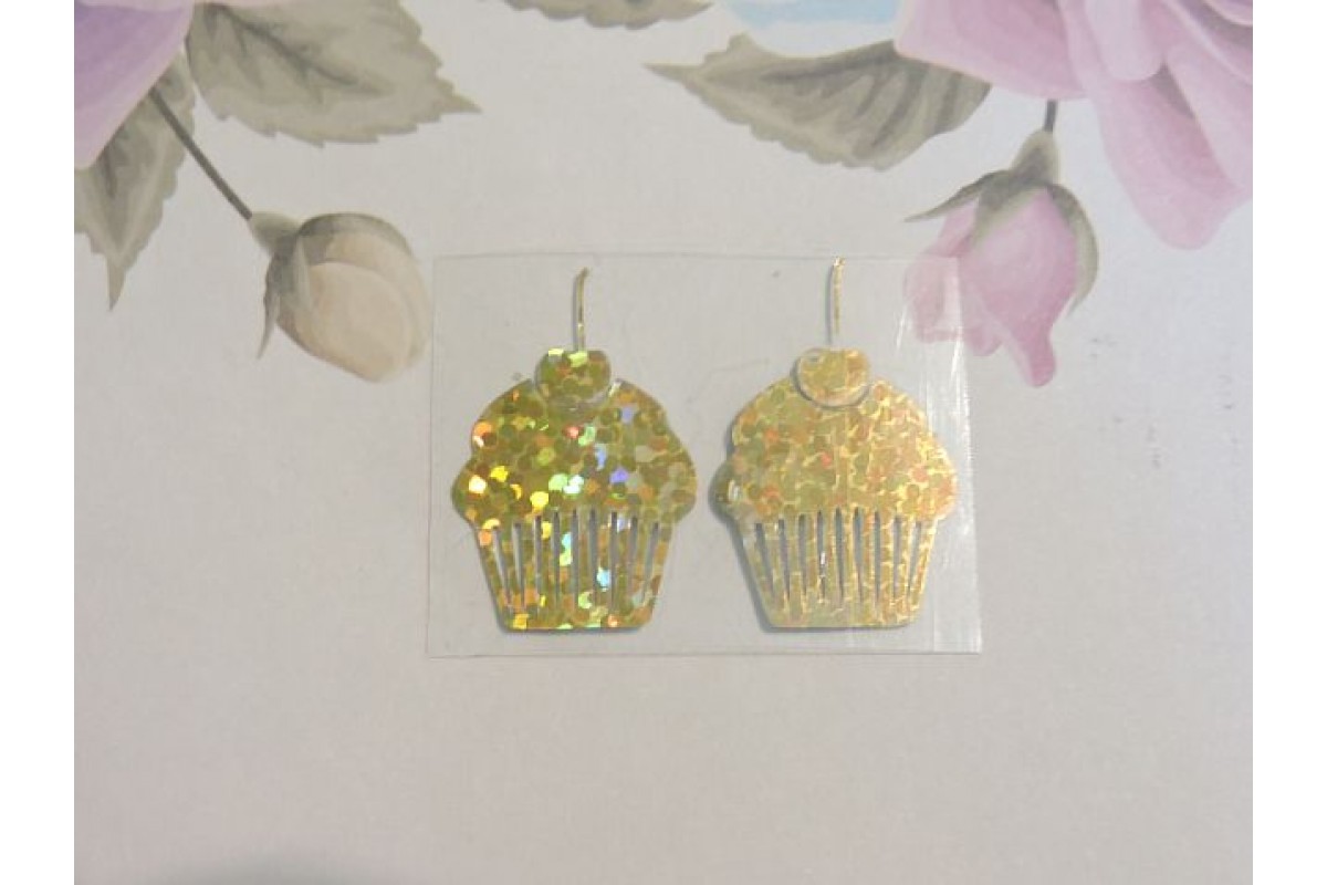 Термотрасферная наклейка "Кексики с вишней" голография, цв. золото 25*15 мм (пара), Кексики с вишней, Беларусь, Термотрансферная надпись