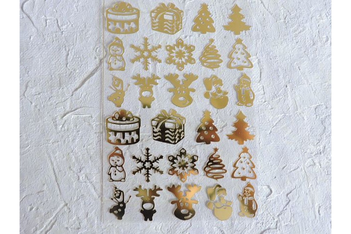Термотрасферная наклейка "Новогодние 1" глянец, цв. золото 8,5*12 см (лист)