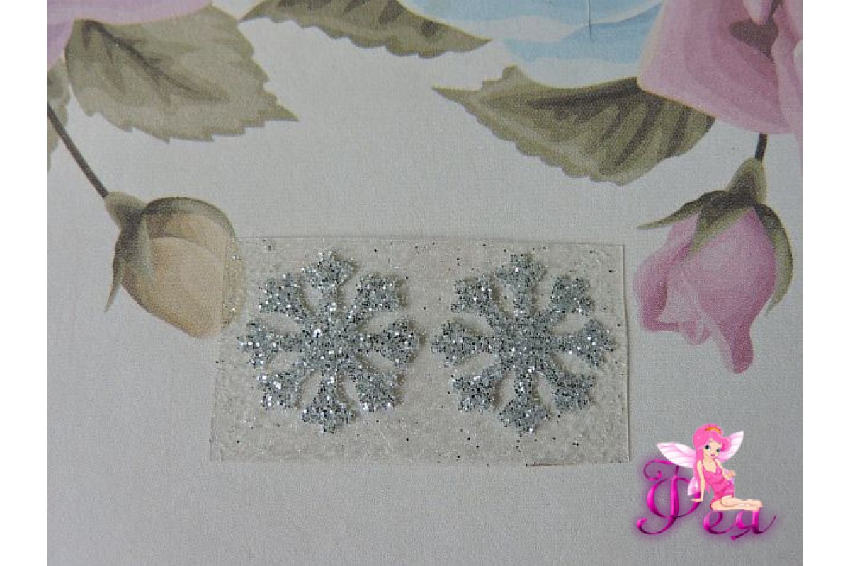 Термотрасферная наклейка "Снежинка 2" с глиттером, цв. серебро 15 мм (пара), Снежинка 2, Беларусь, Термотрансферная надпись
