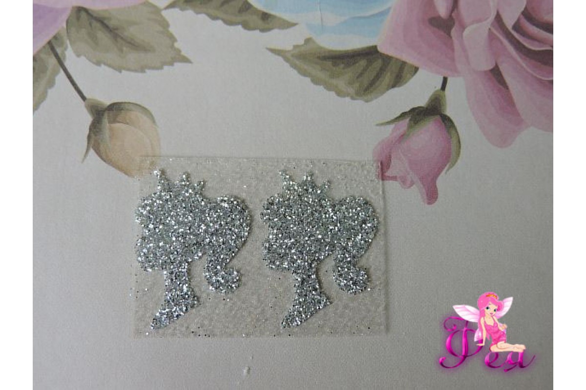 Термотрасферная наклейка "Ученица" с глиттером, цв. серебро 24*16 мм (пара), Ученица с короной, Беларусь, Термотрансферная надпись