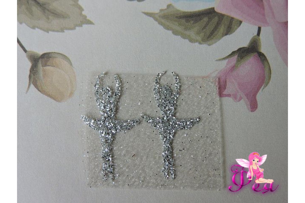 Термотрасферная наклейка "Балерина 2" с глиттером, цв. серебро 25*13 мм (пара)