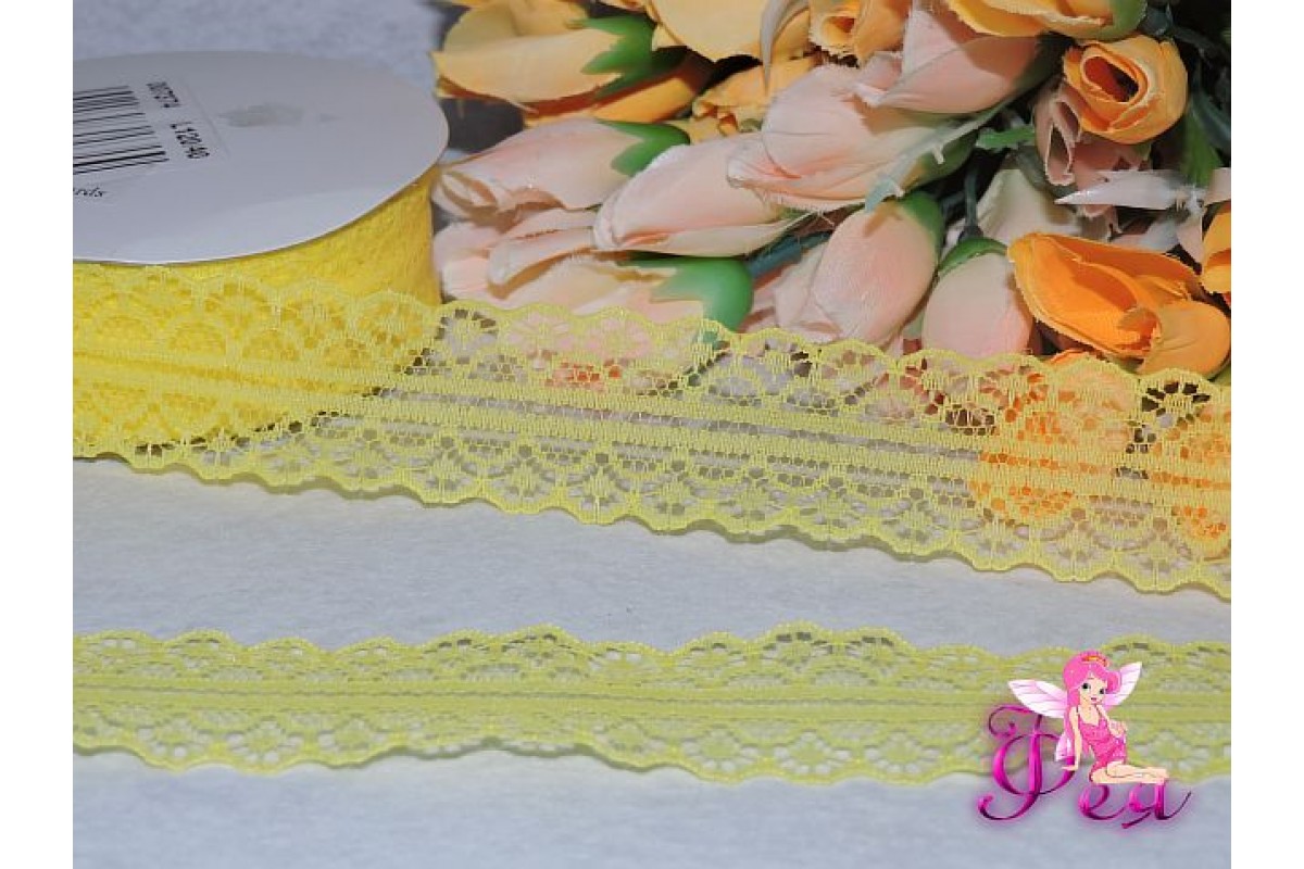Купить кружево капрон 25мм ярко-желтого цвета в любое удобное для Вас время всегда возможно в нашем интернет-магазине. Мы гарантируем качество, сервис высокого уровня и внимательность к любому Вашему желанию.