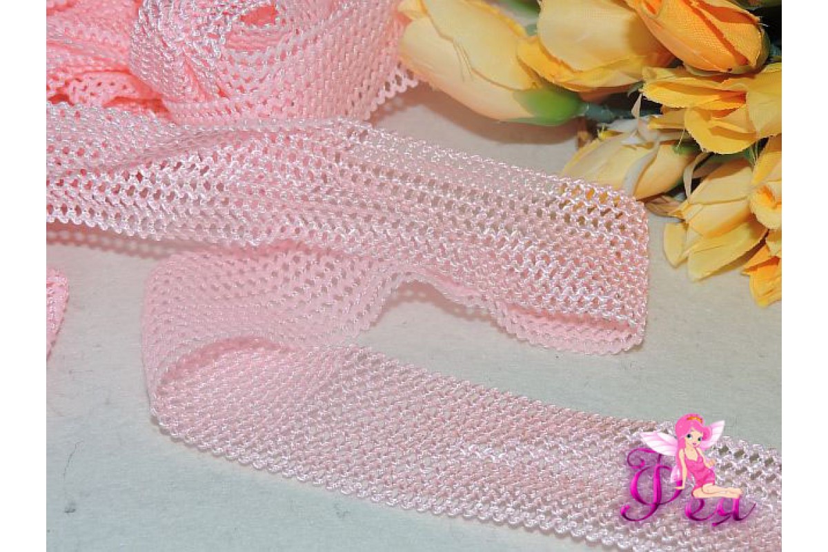 Резинка декоративная 3.7см розового цвета, Е 210/150, Китай, Эластичная тесьма и кружево