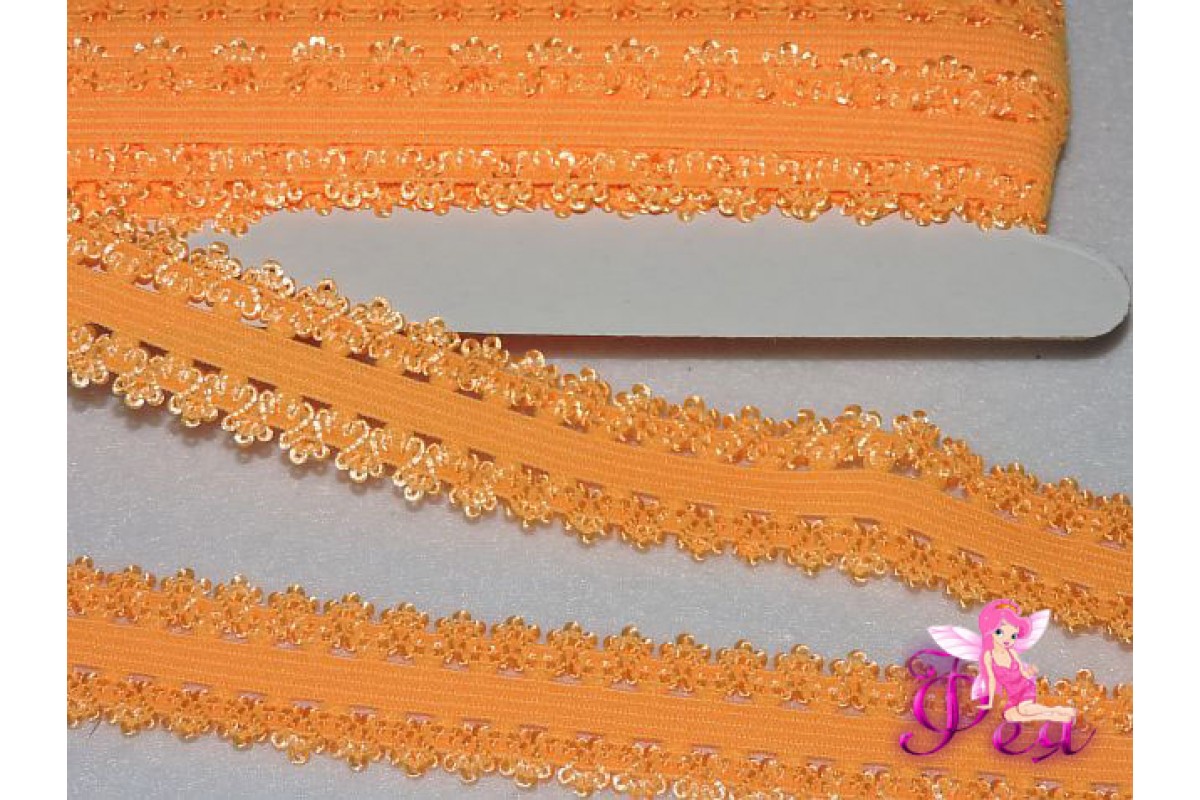 Тесьма-резинка с кружевом 2 см, светло-оранжевый