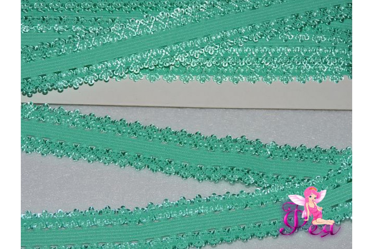 Тесьма-резинка с кружевом 2см, аквамарин, 201-275, Китай, Эластичная тесьма и кружево
