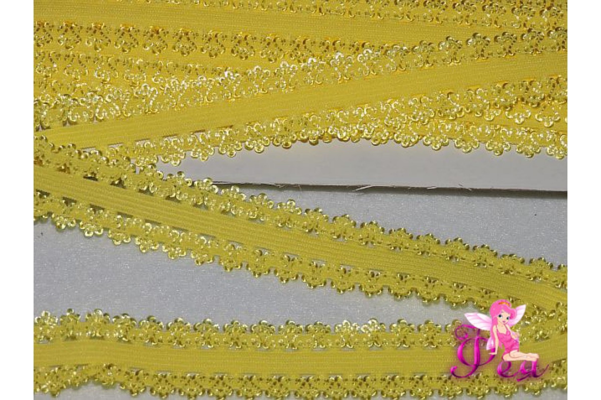 Тесьма-резинка с кружевом 2см, желтый, 201-280, Китай, Эластичная тесьма и кружево