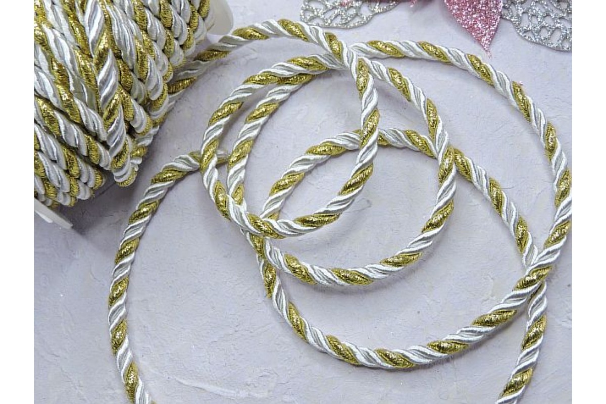 Шнур двухцветный 5 мм, цв. белый/золото - 1 м., 643-324, Китай, Шнур