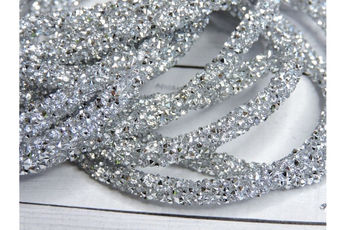 Шнур со стразами, цв. серебро/серебро - отрез 50 см.
